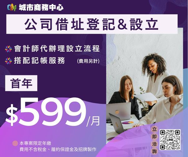 我們特別推出「公司借址登記599優惠專案」